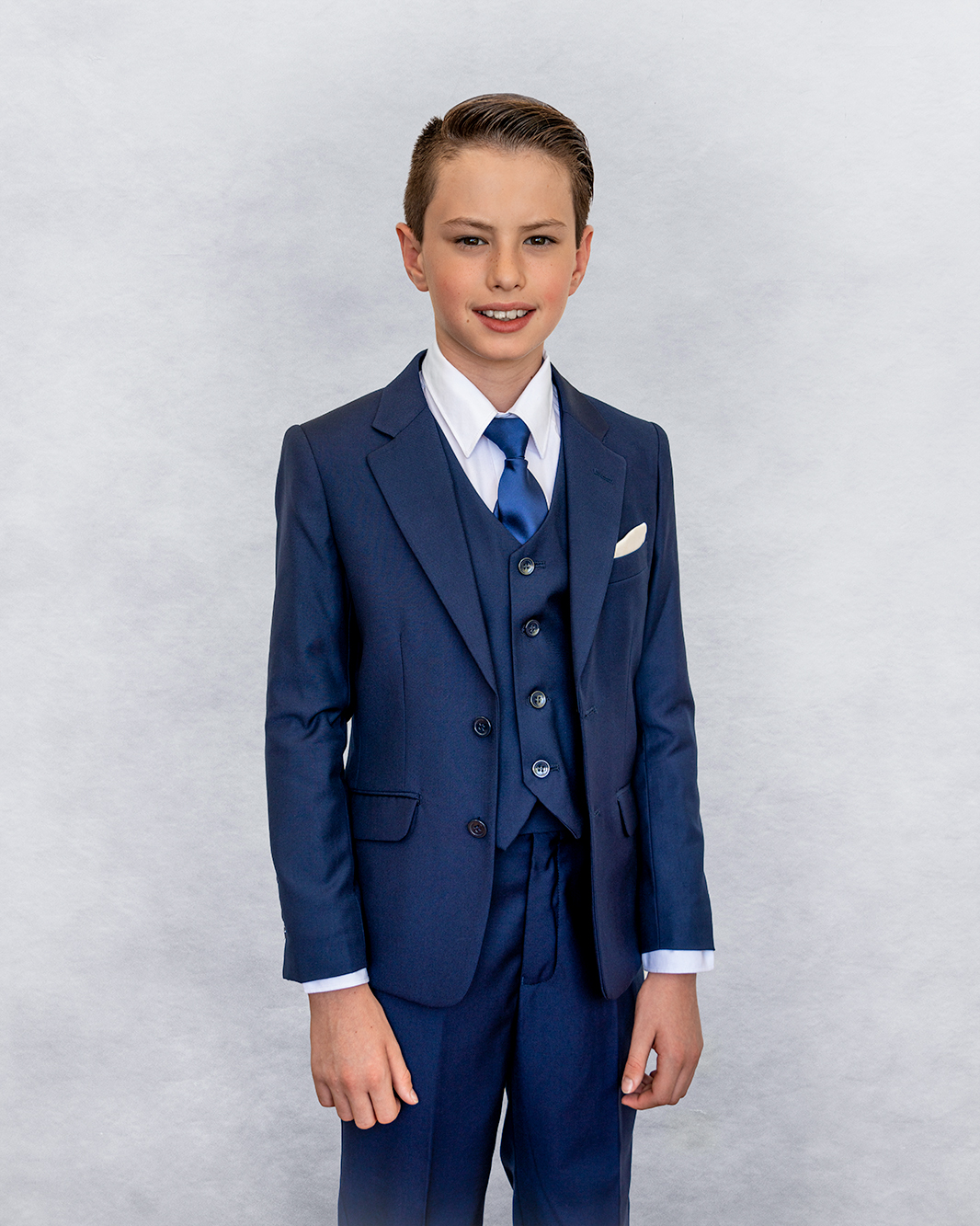 Slim Fit Children's 5 piece Suit Hire packages available in Black and Dark Blue, If you would like hire a suit for your child look no further we offer a selection of Children's suiting to hire or purchase.