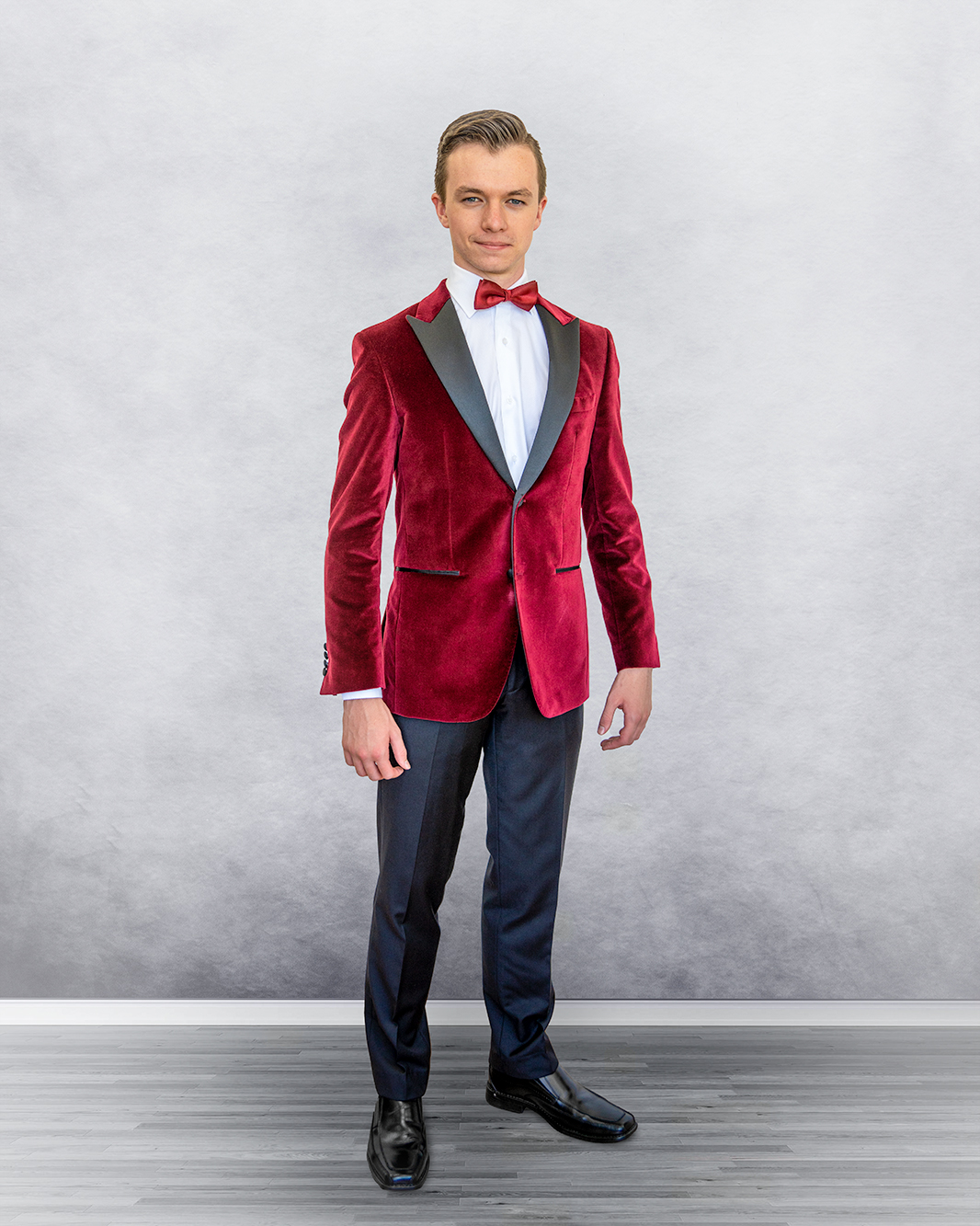 Stand out on your school formal night with a velvet suit that turns heads.