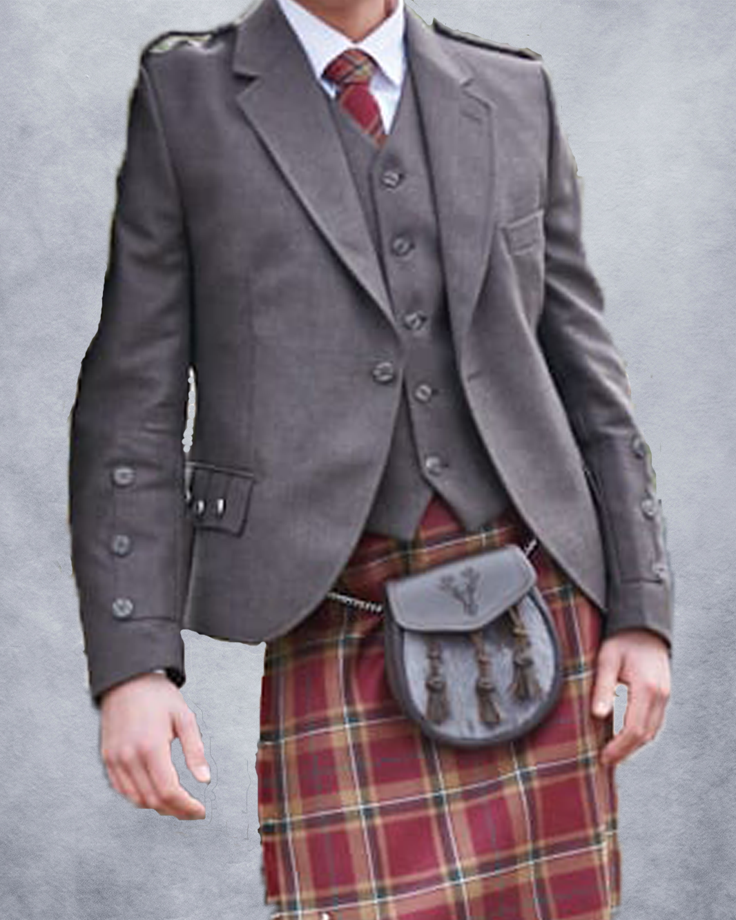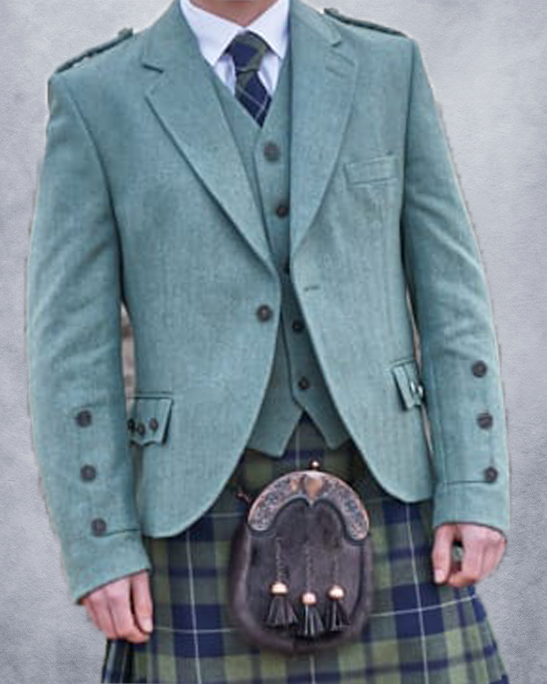 Made from 100% pure new wool, accented with imitation stag horn buttons, epaulettes, and Prince Charlie or Argyle cuffs